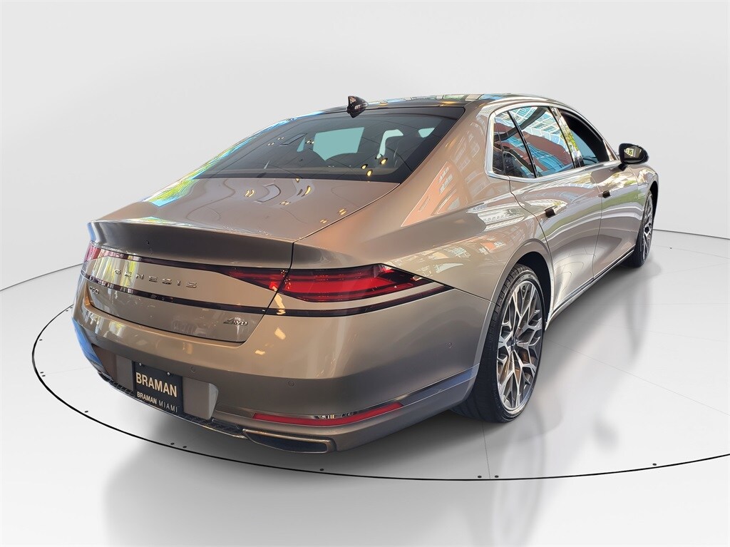 Braman Miami is Proud to offer you this Exceptional 2024 Genesis G90, Appointed with the 3.5T e-SC Trim and is finished in Savile Silver over Black/Bordeaux Brown Leather inside And it is ready for your consideration today! Unsurpassed Customer Service, One Owner, Balance of Factory Warranty, Service Records Available, Rear Backup Camera, Apple Car Play, Factory GPS Navigation, Premium Factory Alloys, Hands Free Bluetooth, Premium Leather Interior, Non Smoker, Factory Alarm System, Best Color Combination, Dual Power Seat, Heated Seats, Climate Controled Seating, Panoramic Moonroof, 4-Wheel Disc Brakes, ABS brakes, Adaptive suspension, Air Conditioning, Alloy wheels, AM/FM radio: SiriusXM, Android Auto & Apple CarPlay, Anti-whiplash front head restraints, Auto High-beam Headlights, Auto tilt-away steering wheel, Auto-dimming door mirrors, Auto-dimming Rear-View mirror, Auto-leveling suspension, Automatic temperature control, Brake assist, Bumpers: body-color, Compass, Delay-off headlights, Door auto-latch, Driver door bin, Driver vanity mirror, Dual front impact airbags, Dual front side impact airbags, Electronic Stability Control, Emergency communication system: Genesis Connected Services, Exterior Parking Camera Rear, Four wheel independent suspension, Front anti-roll bar, Front Bucket Seats, Front Center Armrest, Front dual zone A/C, Front reading lights, Fully automatic headlights, Garage door transmitter: HomeLink, Genuine wood console insert, Genuine wood dashboard insert, Genuine wood door panel insert, Heads-Up Display, Heated & Ventilated Front Bucket Seats, Heated front seats, Heated rear seats, Heated steering wheel, Illuminated entry, Knee airbag, Low tire pressure warning, Memory seat, Nappa Leather Seating Surfaces, Navigation System, Occupant sensing airbag, Outside temperature display, Overhead airbag, Overhead console, Panic alarm, Passenger door bin, Passenger vanity mirror, Power door mirrors, Power driver seat, Power moonroof, Power passenger seat, Power steering, Power windows, Radio data system, Radio: AM/FM Bang & Olufsen 3D Prem Audio System, Rain sensing wipers, Rear air conditioning, Rear anti-roll bar, Rear reading lights, Rear seat center armrest, Rear side impact airbag, Rear Window Blind, Rear window defroster, Remote keyless entry, Security system, Speed control, Speed-sensing steering, Speed-Sensitive Wipers, Steering wheel memory, Steering wheel mounted audio controls, Tachometer, Telescoping steering wheel, Tilt steering wheel, Traction control, Trip computer, Variably intermittent wipers, Ventilated front seats, Ventilated rear seats, Wheels: 21" x 8.5J Fr & 21" x 9.5J Rr Alloy. 2024 Genesis G90 3.5T e-SC 3.5L V6 DGI Supercharged DOHC 24V LEV3-ULEV70 409hp 8-Speed Automatic AWD